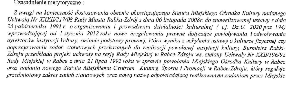 • Czy będzie zmiana w Miejskim Ośrodku Kultury w Rabce Zdroju ? Na razie nie.