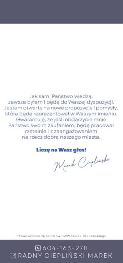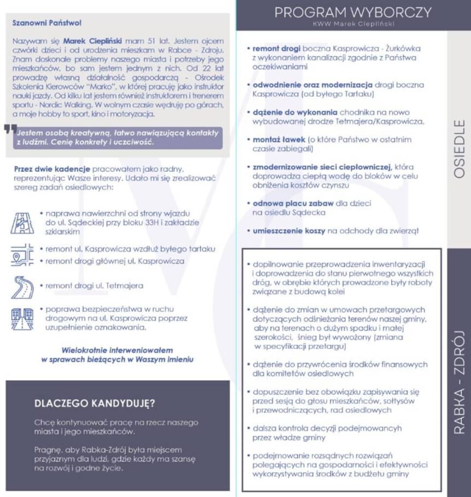 Moja Rabka Program wyborczy Marka Cieplińskiego admin 23 marca, 2024 Zdjęcia: KWW MARKA CIEPLIŃSKIEGO Zobacz wpisy Poprzedni: Nagranie z LXXX Sesji Rady Miejskiej w Rabce Zdroju z 28.02.2024Dalej: Marek Ciepliński dziękuje za zaufanie Więcej historii Moja Rabka Rabka-Zdrój: Straż Miejska szuka nowych funkcjonariuszy. Trwa nabór na dwa stanowiska admin 28 marca, 2026 Moja Rabka Ruszył konkurs na Prezesa Uzdrowiska Rabka S.A. Trwa nabór kandydatów admin 21 marca, 2026 Moja Rabka Zostań komendantem Straży Miejskiej w Rabce-Zdroju. Miasto ogłosiło rekrutację admin 15 marca, 2026
